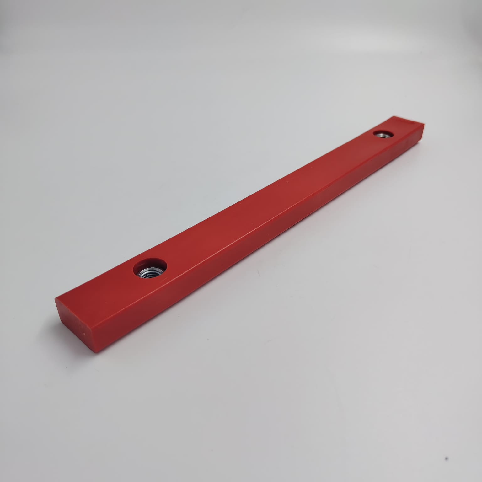 Направляющая телескопа верхняя, прямоугольной форму, имеет два отверстия с резьбовыми металлическими вставками. Предназначена для предотвращение касания и износа металла телескопа с рукоятью задней стрелы экскаватора погрузчика JCB 3CX 4CX .