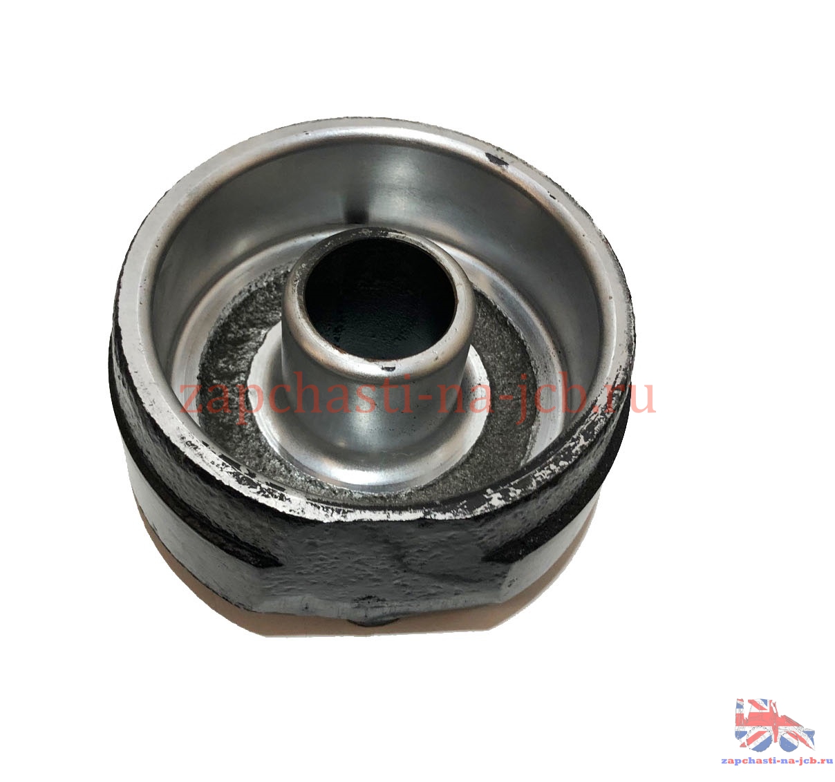 Круглое чугунное изделие с отверстием в центре диаметром 39 мм (для установки сальника гидрозамка), и двумя отверстиями диаметром 14 мм на внешней стороне (для подвода шлангов подачи масла).